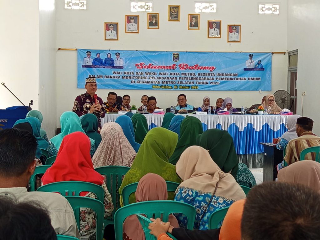 Hal itu ditegaskan Walikota Metro, H. Bambang Iman Santoso, saat melakukan monitoring penyelenggaraan pemerintahan umum di Kecamatan Metro Selatan, Kamis (2/10/2025).