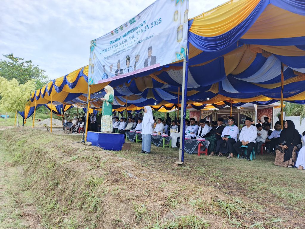 “Hari ini kita berkumpul dalam suasana khidmat memperingati Hari Santri 22 Oktober 2025. Hari di mana bangsa Indonesia mengenang satu babak sejarah agung ketika para ulama dan santri dengan segenap jiwa dan raganya bangkit mempertahankan kemerdekaan melalui Resolusi Jihad Nahdlatul Ulama pada 22 Oktober 1945.” Ujarnya.