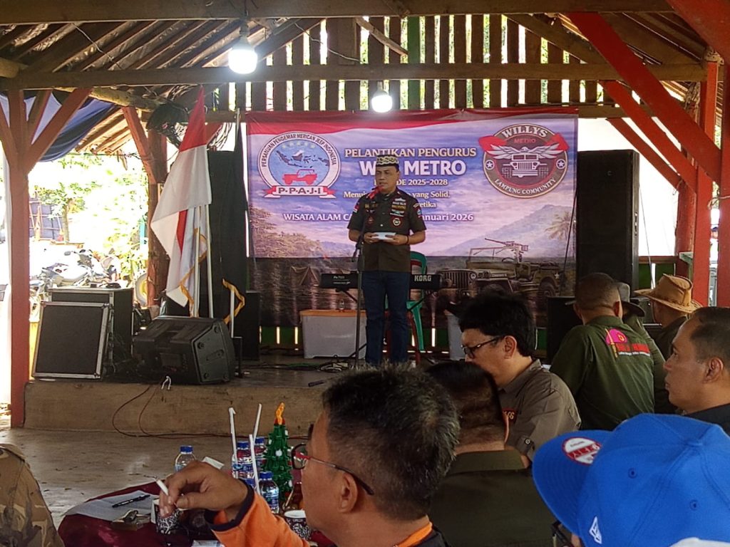 Lingkarmetro.com | METRO – Pelantikan pengurus Willys Lampung Community (WLC) Kota Metro periode 2025–2028 berlangsung di kawasan wisata Capit Urang, Kelurahan Purwoasri, Kecamatan Metro Utara, Minggu (25/1/2026).