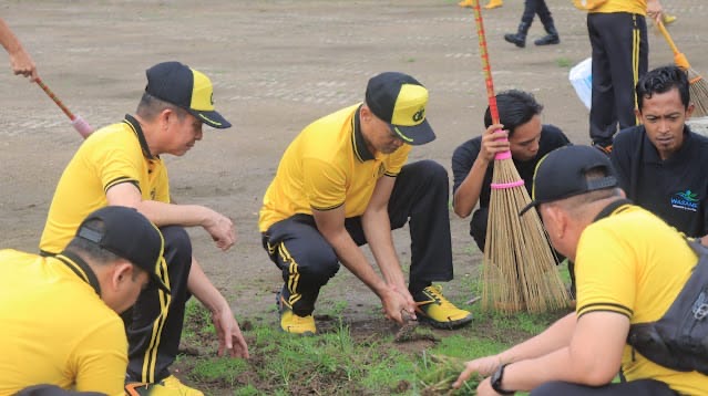 Puluhan personel tampak menyisir area lapangan, membersihkan sampah, merapikan semak dan fasilitas umum, hingga memastikan kawasan publik itu kembali layak, bersih, dan nyaman. Pemandangan ini sekaligus menegaskan bahwa persoalan kebersihan kota bukan urusan satu instansi, melainkan tanggung jawab kolektif.