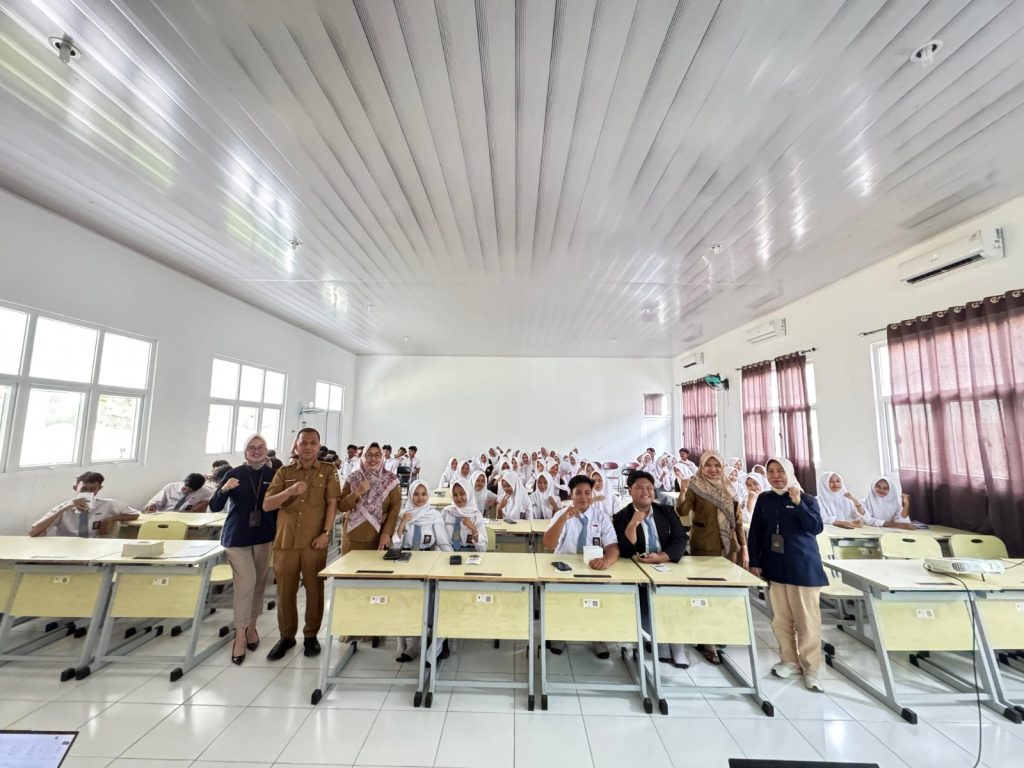 Lingkarmetro.com | Sukadana — Sosialisasi program dan manfaat perlindungan BPJS Ketenagakerjaan bagi siswa-siswi SMK Negeri 1 Sukadana yang akan melaksanakan kegiatan magang tahun 2026 telah dilaksanakan di Aula SMK Negeri 1 setempat pada Selasa, (10/02/2026).
