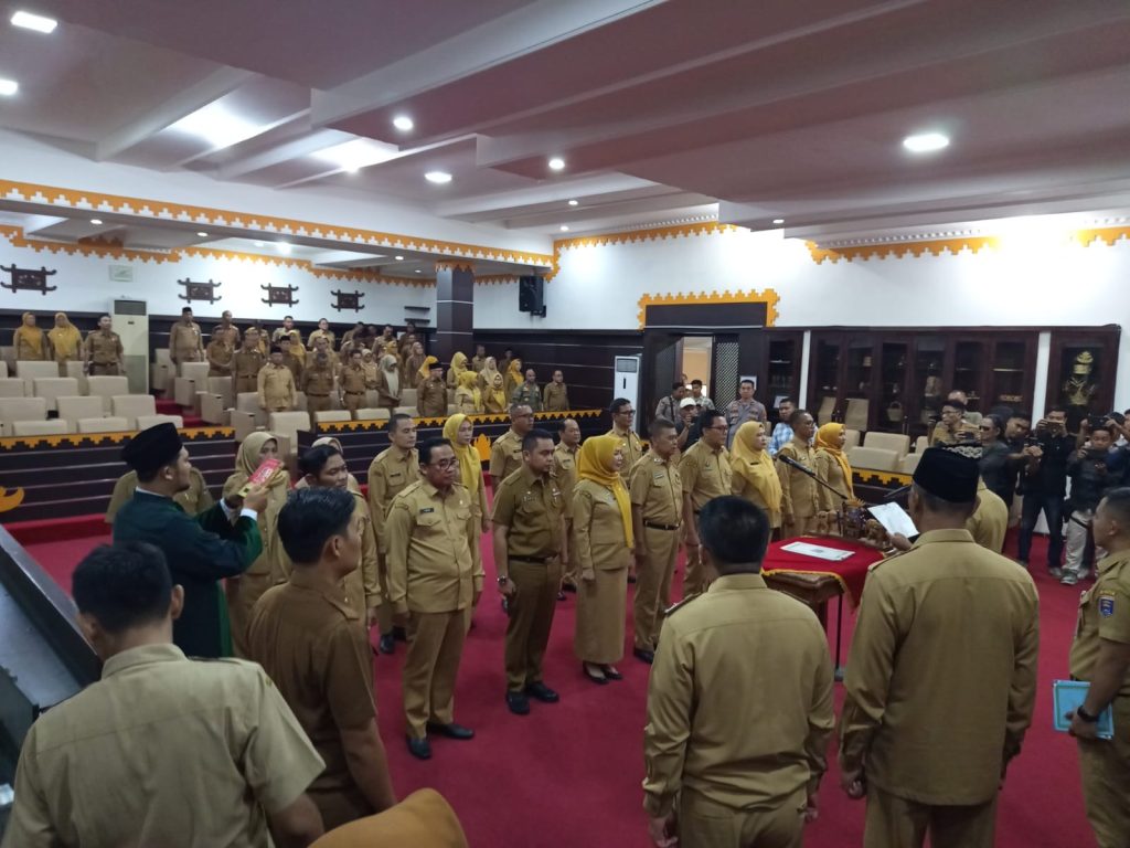 Lingkarmetro.com | METRO – Sebanyak 17 pejabat setingkat kepala dinas (eselon II) di lingkungan Pemerintah Kota Metro dirolling dalam sebuah pelantikan besar-besaran yang digelar di Aula Lantai II Gedung Pemkot Metro, Senin (23/2/2026). Kemudian tambahan satu nama dari luar daerah, yakni pejabat asal Kabupaten Mesuji turut dilantik mengisi jabatan strategis di Kota Metro.