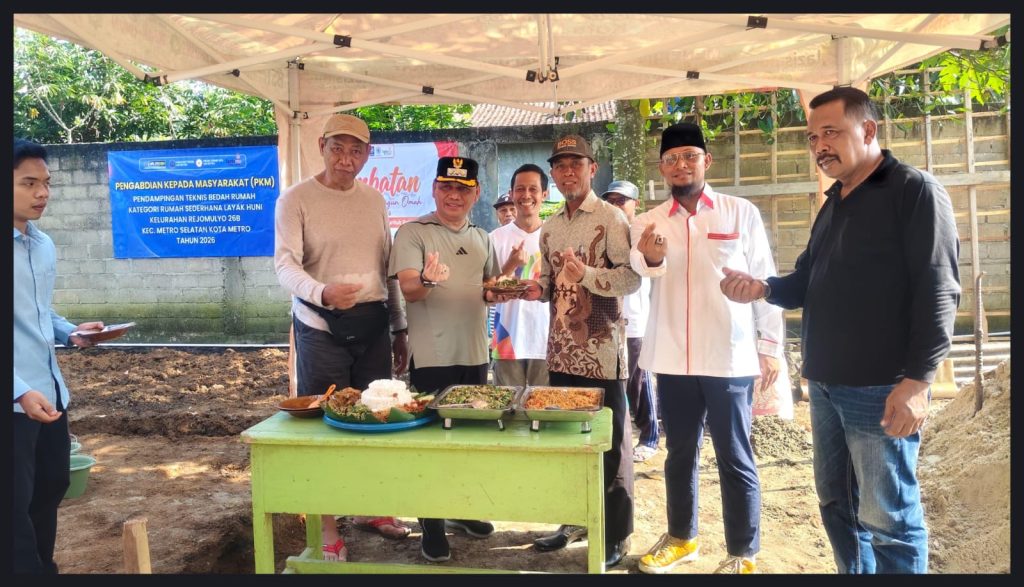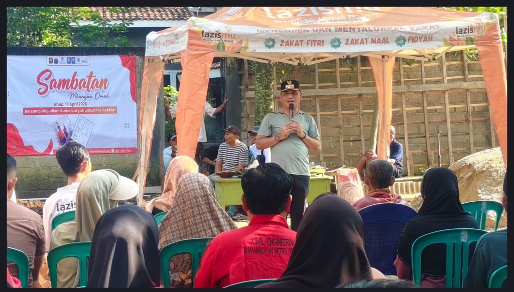 Lingkarmetro.com | Metro — Pemerintah Kota Metro bersama Pimpinan Daerah Muhammadiyah (PDM) Kota Metro resmi memulai pembangunan rumah layak huni milik Bapak Rokhim melalui prosesi peletakan batu pertama yang digelar di Rejomulyo, Kecamatan Metro Selatan, pada Ahad,19/4/2026.